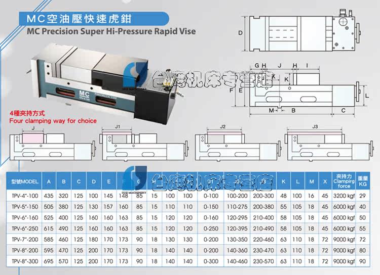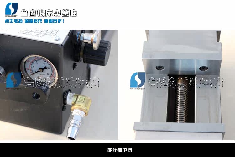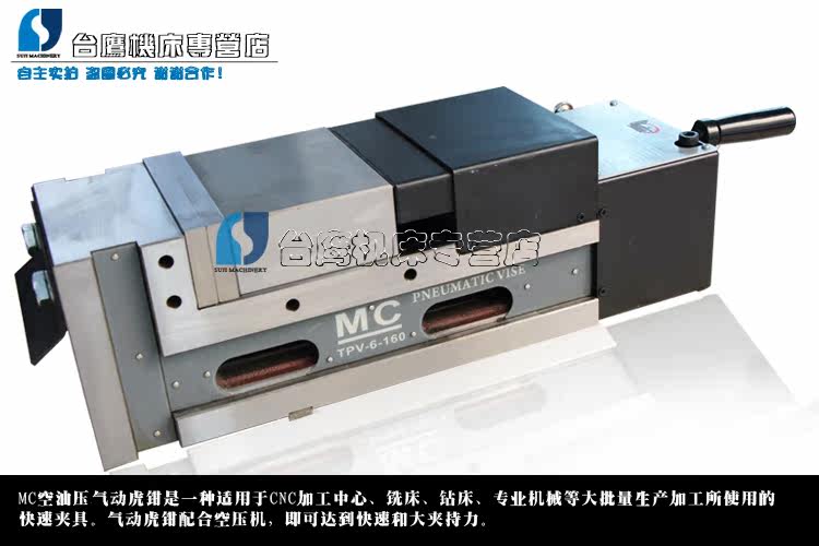 高夹持力:空压源8kg/cm²之低压源,几即可达9000kgf高挟持力,挟持力可从0-9000kgf可由调压器自由调整。自动寻找高空压源;当铜铝类产品轻加工或铸铁类初胚重切削时,用调压器调整在所需压力,也不会因空压源在低点而失灵,且有自动补压及稳压之功能,确保工件知夹持。